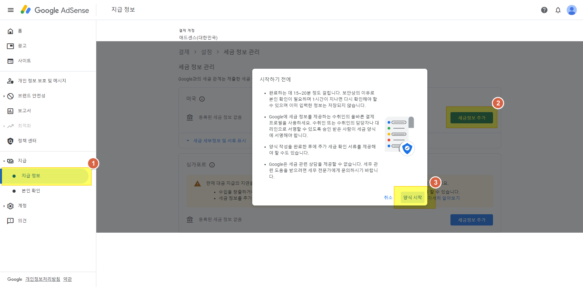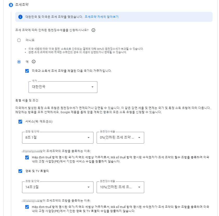 애드센스 - 싱가포르 세금 정보 추가 입력하기