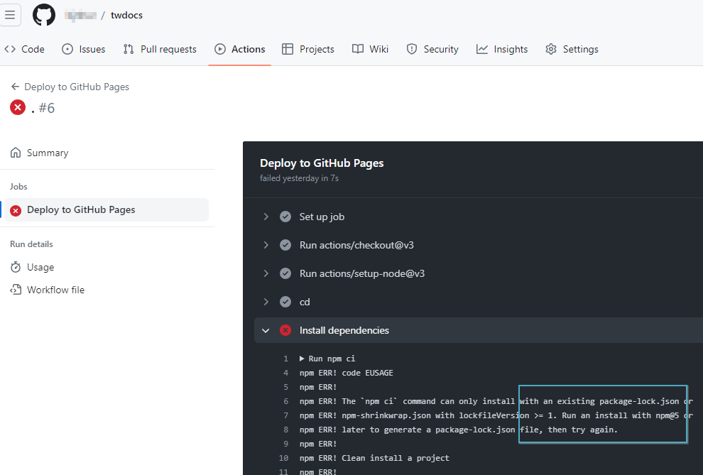 GitHub Actions 에러 메시지 확인