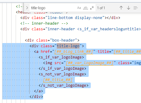편집창에서 Ctrl+F 를 누르면 문자열 검색이 가능하다. 아래 그림처럼 title-logo 를 입력해 보면 1개 나와 수정이 쉽다.