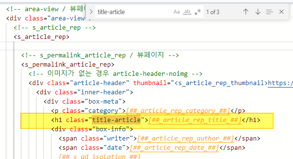 마찬가지로 Ctrl+F 로 "title-article" 로 찾으면 3개의 검색 결과가 나온다.