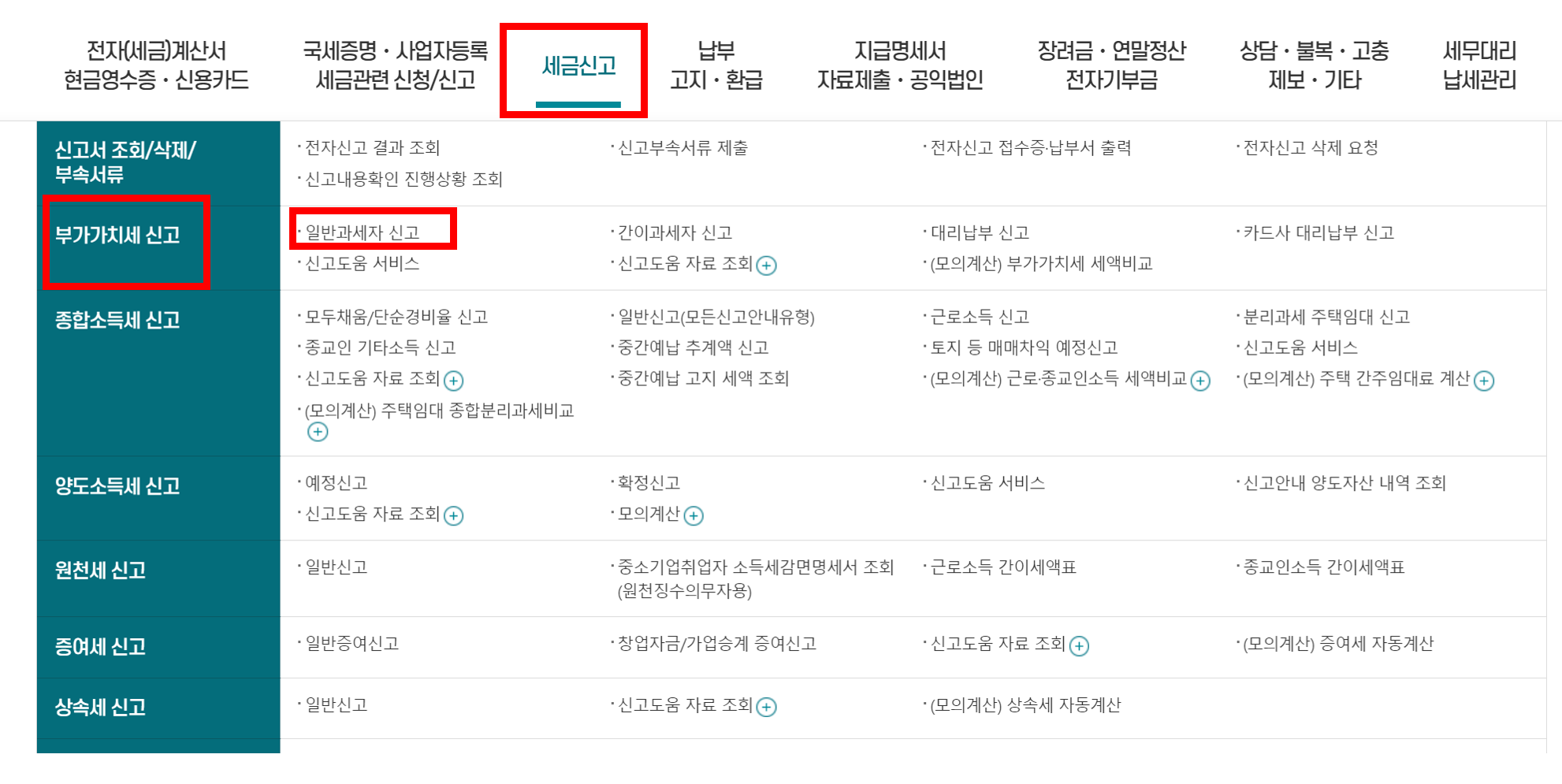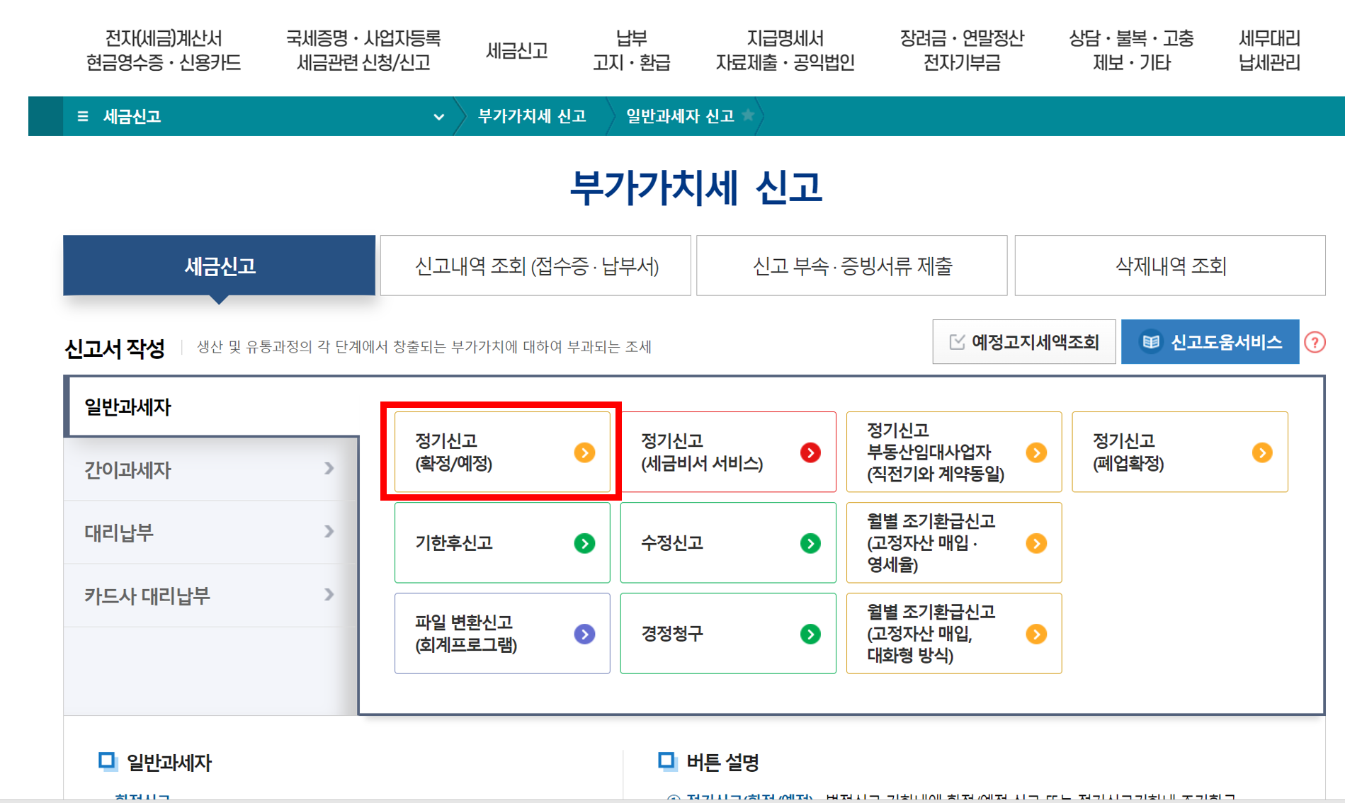 세금신고 -> 부가가치세 신고 -> 일반과세자 신고