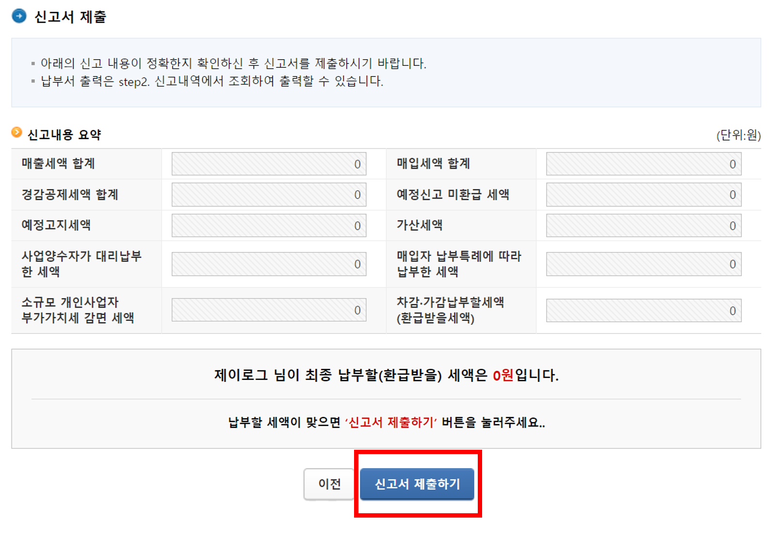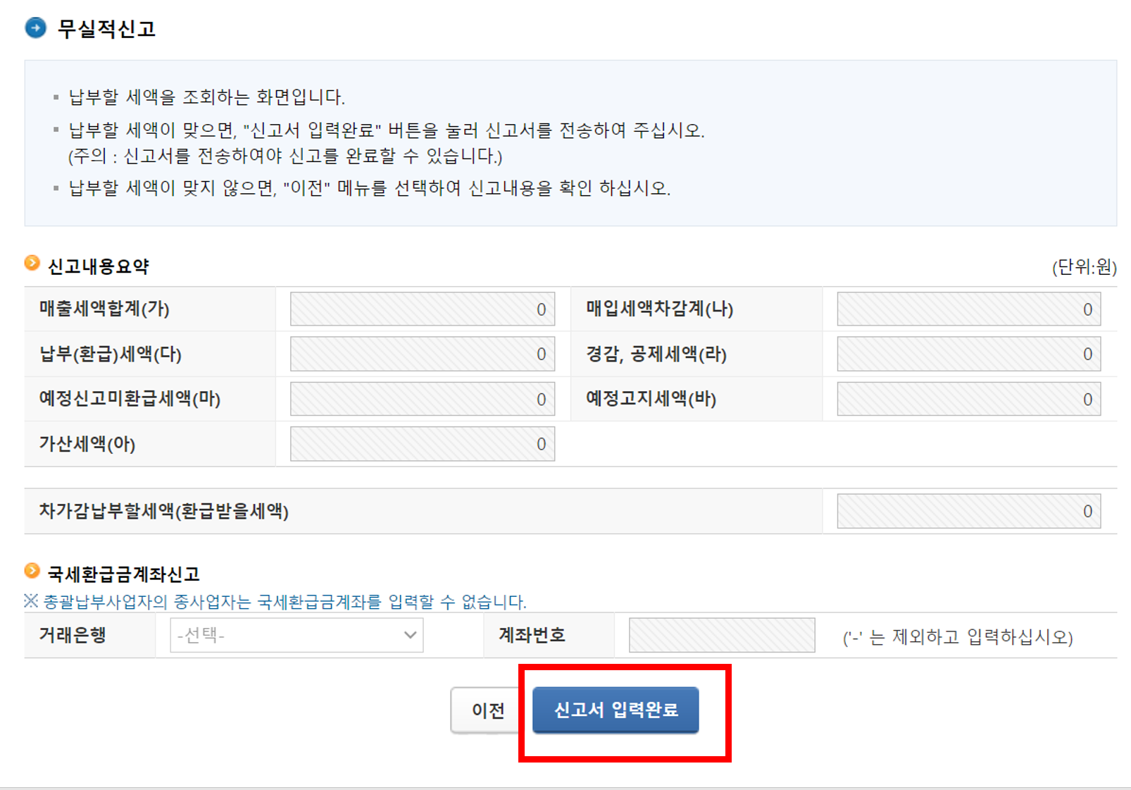 3. 무실적 부가세 신고