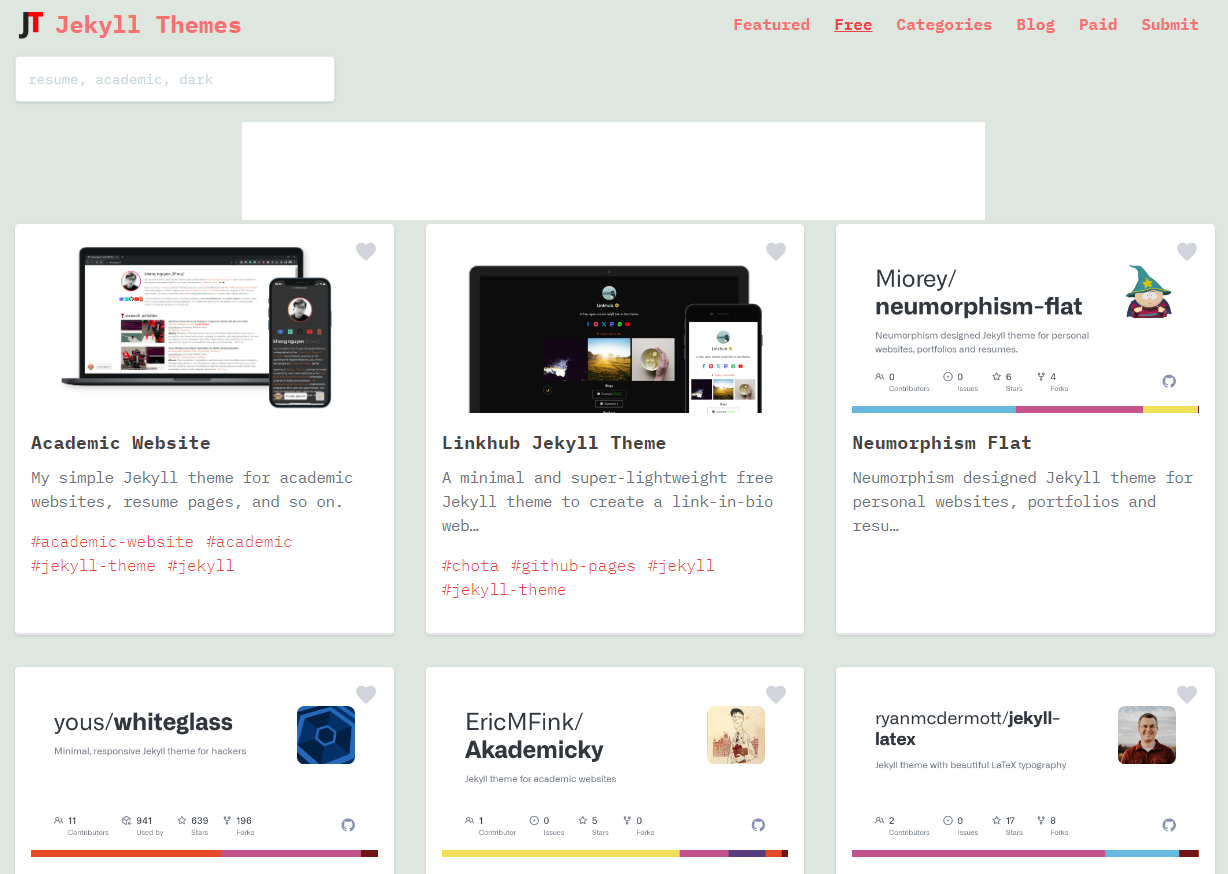 GitHub Pages 블로그 만들기에 대한 글을 써보려 한다. 우선 지킬이라는 플랫폼을 활용할 예정이다. 어떤 식으로 나오는지 Jekyll 사이트 디자인 추천을 위한 사이트를 몇개 소개한다.