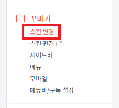 관리자 페이지 > 꾸미기 > 스킨 변경 으로 이동 합니다.